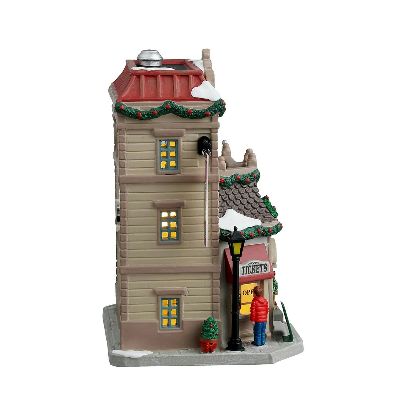 The Museum of Nature & Science is a delightful lighted village building that brings the educational charm and festive spirit of the holiday season to life. This intricately detailed structure is both captivating and inviting, making it a standout addition to any holiday village display.