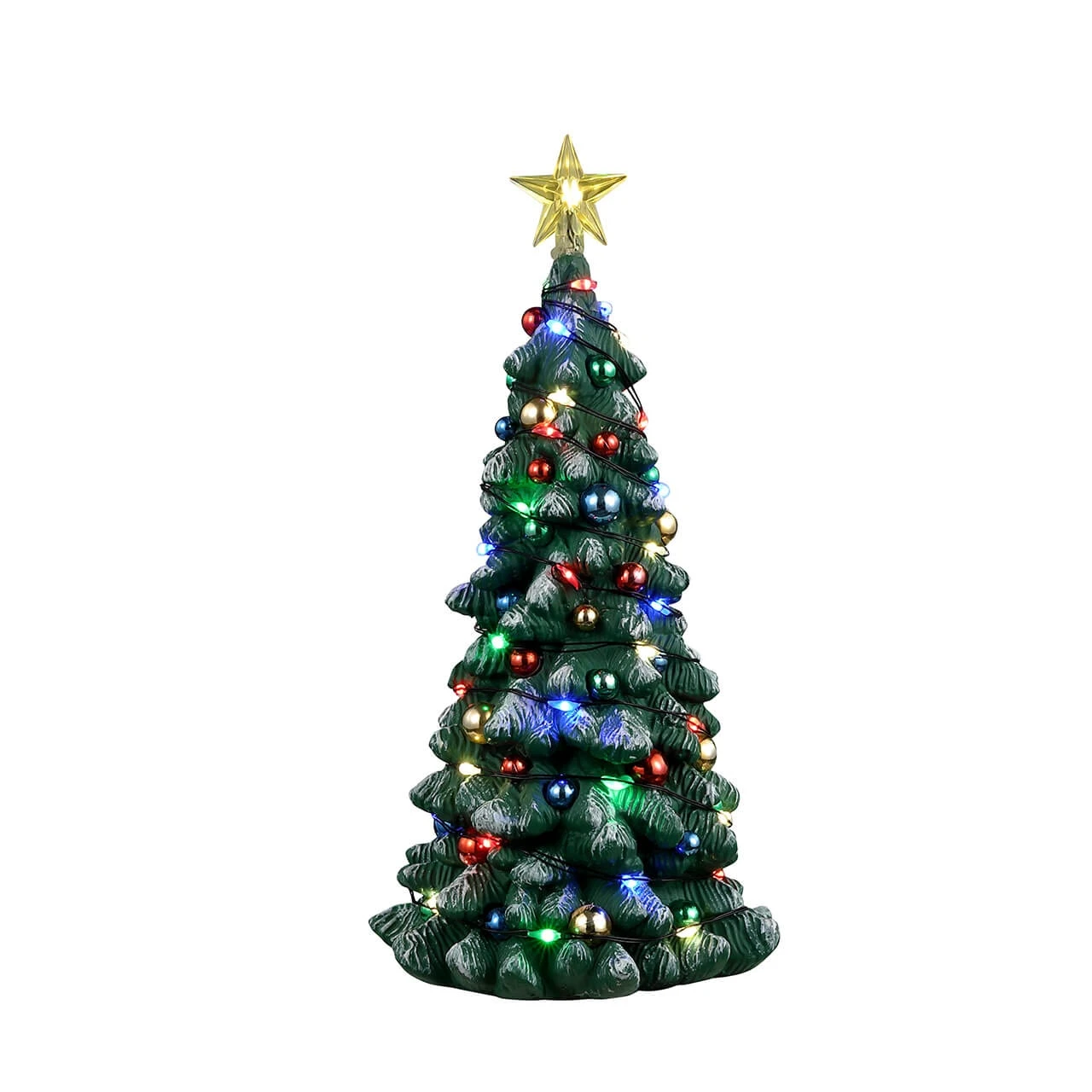 It must have snowed overnight because the town square Snowy Christmas Tree is sparkling with freshly fallen snow. Beautifully lit and covered with colorful ornaments, this stunning tree is a wonderful way to add magic to your Christmas scene.